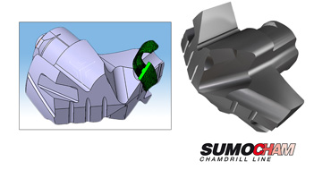 钻削难加工材料奥氏体不锈钢及双相不锈钢(ISO M材料组)时存在困难,特别是钻深很大时。为提高这类材料的钻削加工性能,伊斯卡研发出带分屑槽的硬质合金刀头ICG。刀头直径范围为14-25.9mm。刀头装夹于标准束魔变色龙钻杆(SUMOCHAM)上,提供高品质的钻孔加工,最大钻深达12xD。刀头切削刃上设计有分屑槽,特别的卷屑设计确保具有出色的切屑控制性能,在深腔钻削应用中的排屑问题就这样被轻易地解决了。 在卷屑槽作用于切屑成型的过程中,切屑流建模是流程中重要的一步,也是决定设计方案是否成功所不可分割的一部分。